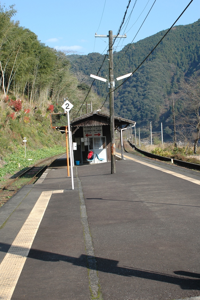 本日の秘境駅の中では一番大きい駅です。なにしろ待合室がちゃんと外と仕切られています。さらにホームの両側に線路があり、列車交換(すれちがい)ができます。