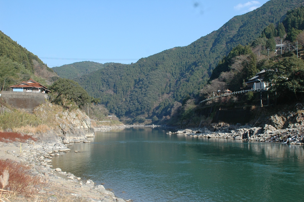 対岸には集落が見えます。