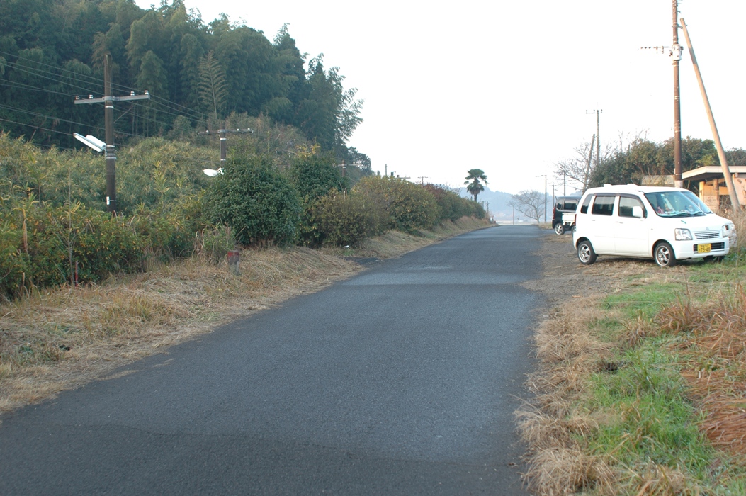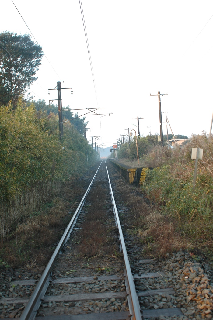 その道路です。右に見える階段を上ると駅があります。人家が2,3軒ありました。