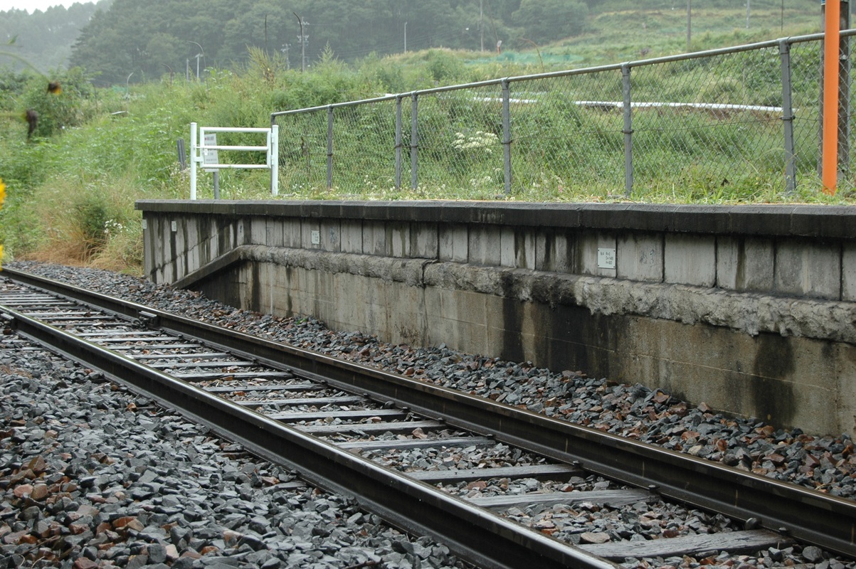 ホーム側面。嵩上げされている。最後のスロープを無くしてしまったのはなぜなんだろう。しょうもない疑問ではあるが、やっぱり切符の回収の問題ですかね。