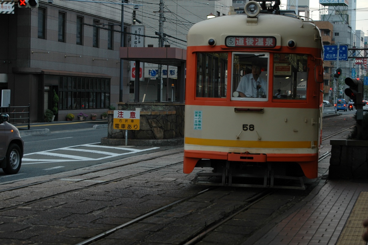 松山駅前から市電に乗る。道後温泉行き。しかし道後温泉に泊まるわけじゃない。温泉も、松山城も、坊ちゃんも、子規も関係ない旅であった。さっさとホテルへ行って休む。疲れたよ。