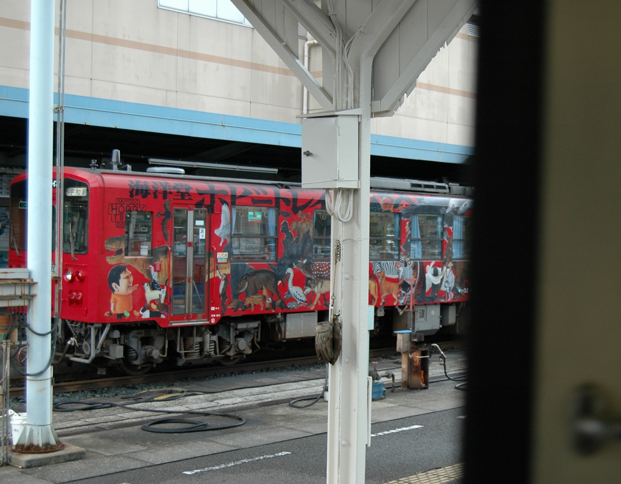 uwajima2.jpg 宇和島駅で撮ったものである。「海洋堂ホビートレイン」。私の乗る列車が出発するのとほぼ入れ替わりぐらいに入線したので、ひどい写真になってしまったが、こんなキャラクター列車も作られていたのだ。一両編成でも列車というのか知らないが。宇和島で見たときはなんじゃ、こりゃ?状態。