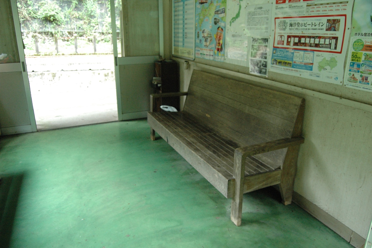トイレである。これで泊まりも安心。戸をあけると、通路が素通しで、駅舎の反対側に出られる。写真はホーム側から。