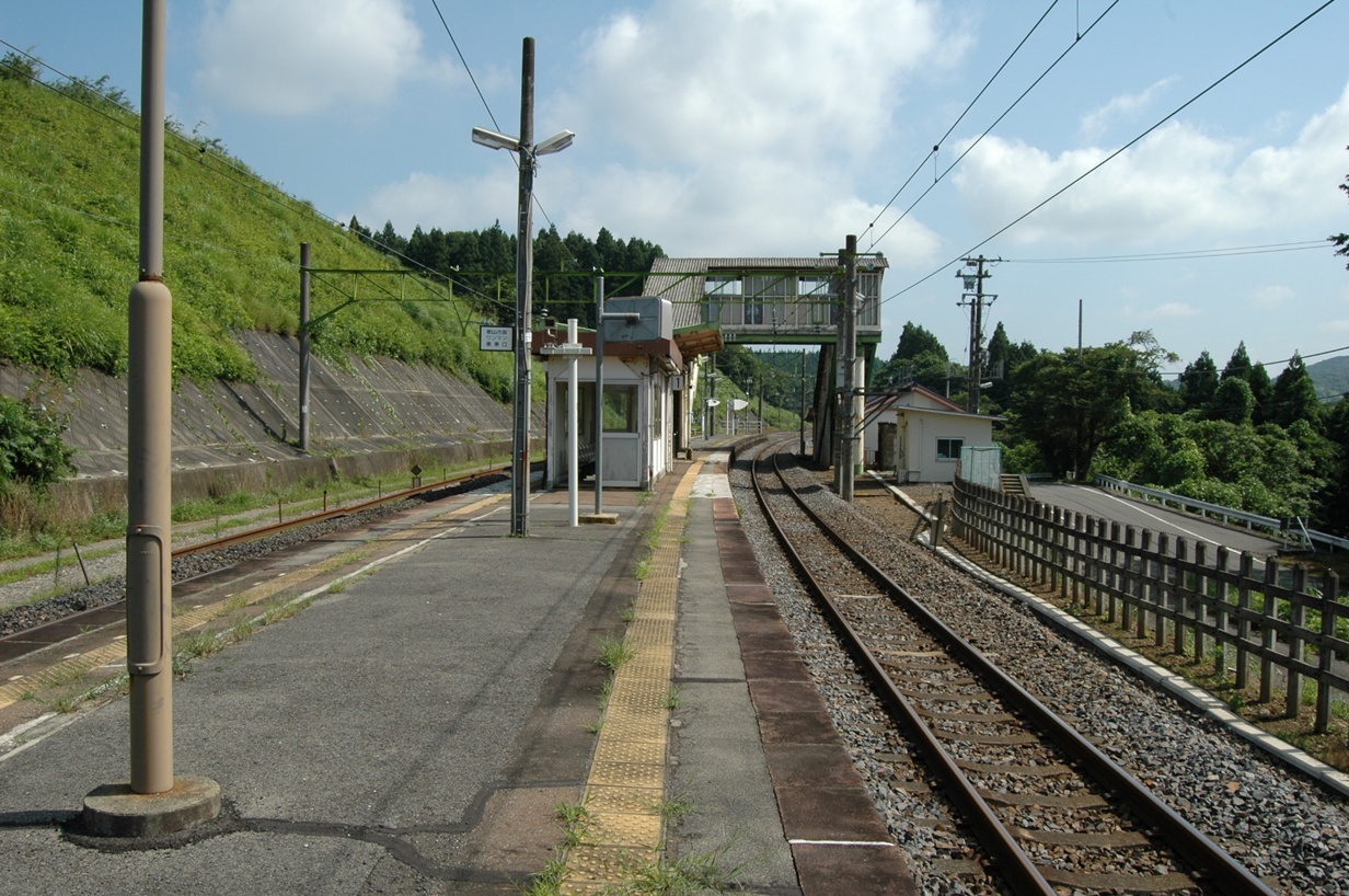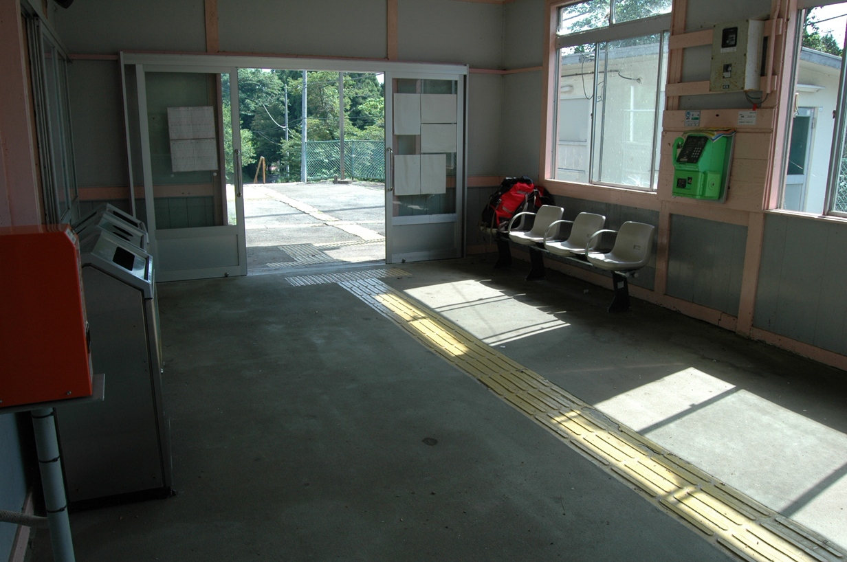 この駅には特筆すべき点がある。写真、待合室手前右側の建築物はトイレなのだが、これがなんと水洗なのである。水洗トイレの秘境駅。どっか他にあったかなぁ。(あったね、そういえば。いつか書こう)