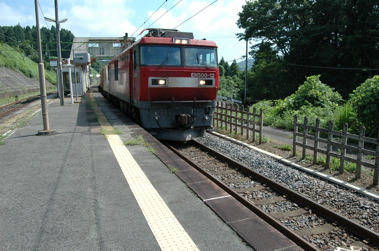 などと、うとうとしかけていると、静寂を切り裂いて電気機関車EH500登場。貨物列車の通過。EH500などと通ぶったようなことを書いているが、もちろん知らない。車体にそう書かれているから読んだまでである。