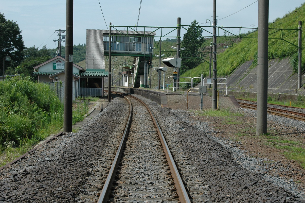 トンネルを抜けると線路の反対側に出られて、踏み切りになっていた。しかしこの踏み切りは渡れない。踏み切りの先は柵である。管理用の踏み切りなのだろう。踏み切り上から駅を撮ってみた。