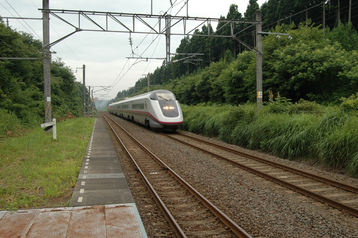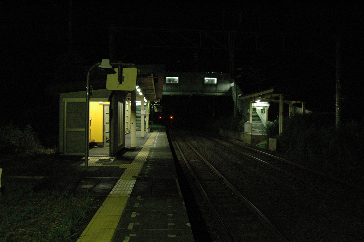 新幹線の通過はかなり驚かされた。ホームにいたのだが、風圧のせいで虫どもを刺激したのか、通過の後虫の数が2,3倍にもなり、ホームの待合室はとても入る気になれない状態になった。別に新幹線に驚いたわけじゃないw。23:57は当然最終である。これに乗って秋田までいけばネットカフェくらいあるだろうと思いもしたのだが、明るい時のこの駅を見たいと思い、この列車を見送ってしまった。待合室の電気は1:00に消灯した。しかしホームは煌々としていて、ここが消灯したのは朝の6:00であった。
