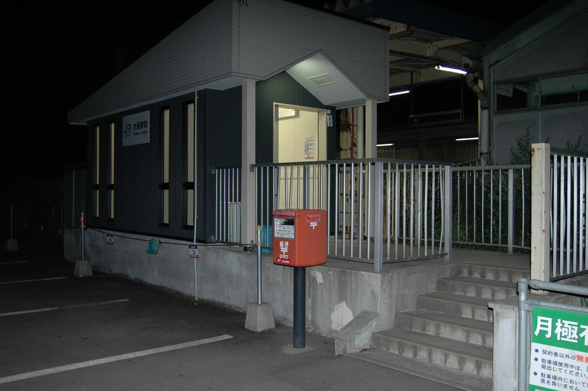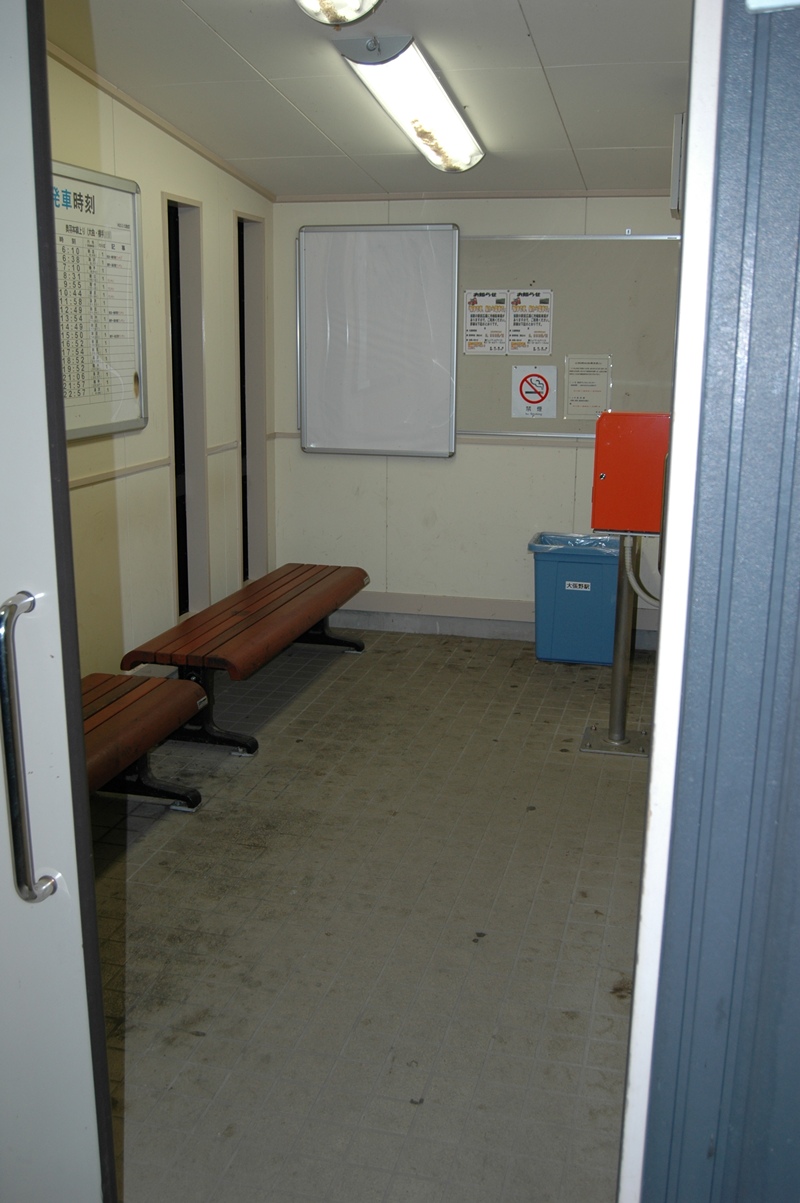 5年ほど前までは、貨車を改造して作られたなかなか雰囲気のよろしい待合室だったそうだが、現在はここも近代建築である。写真、階段の前は月極駐車場になっていたが、時刻のせいか、車は1台も無かった。