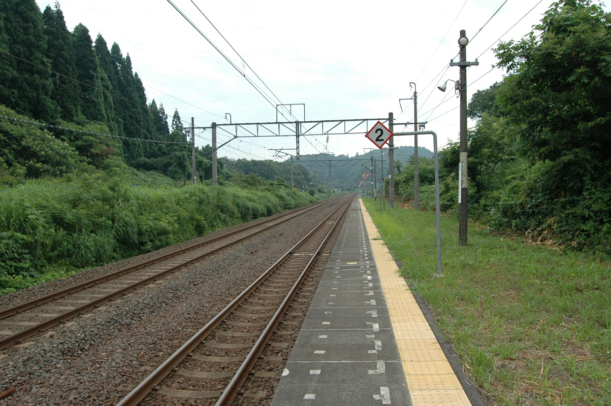 坂道を少し登り、駅を見る。この坂を上っていくと2軒ほど住宅があった。