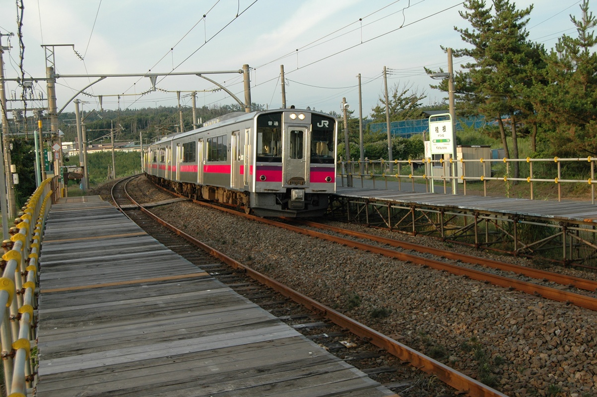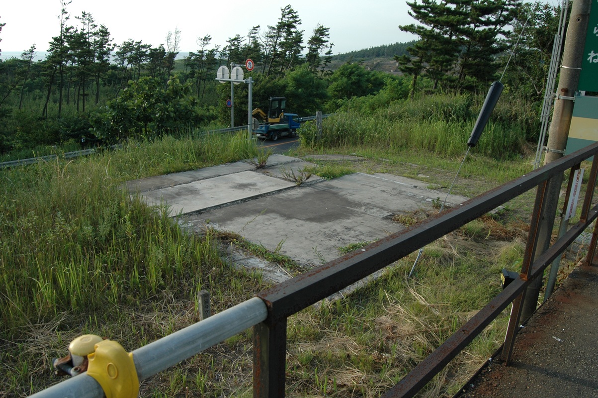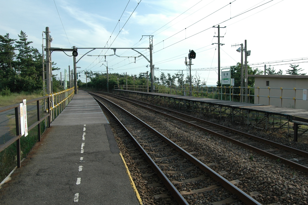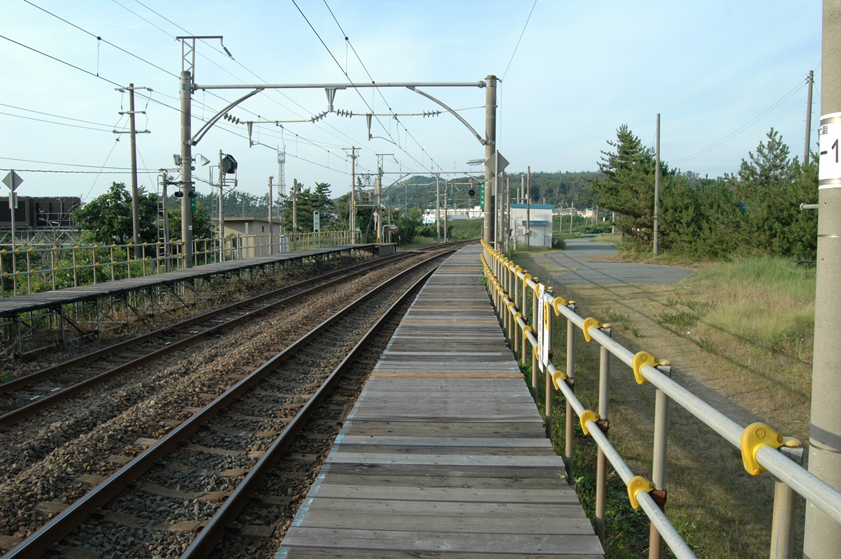 西側ホームのすぐ向こうには、国道7号線が走っている。交通量はかなりある。国道番号1桁台だし。やはりあまり秘境っぽくはないですな。