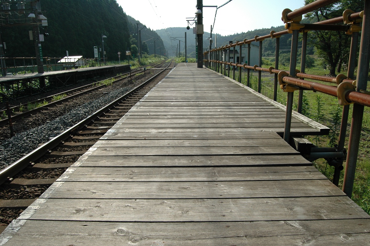 ホーム。板張り。前日の桂根によく似ている。もともとあったホームに木張りでホームを延長。ここも元は信号場だったそうである。