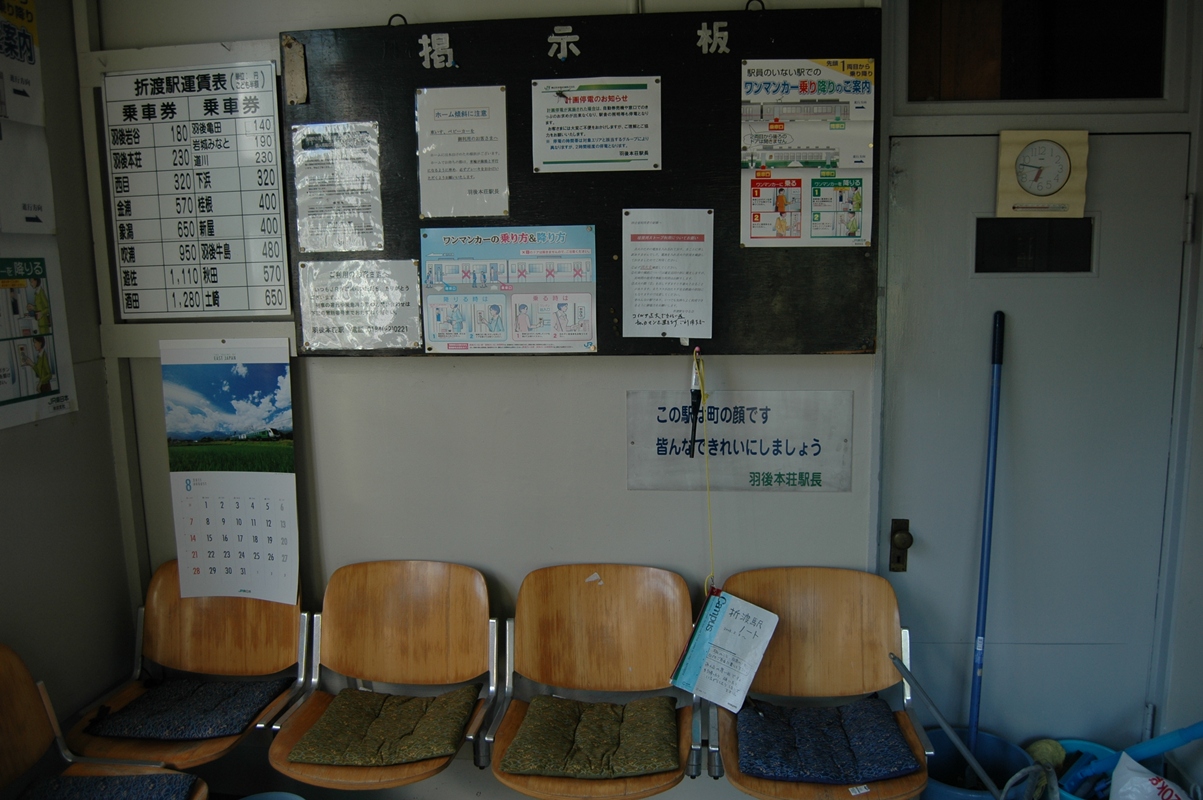 駅ノートもありますよ。時計は約30分遅れている。というか止まってるのか。(爆)それはさておき、ほんとに清掃が行き届いている。