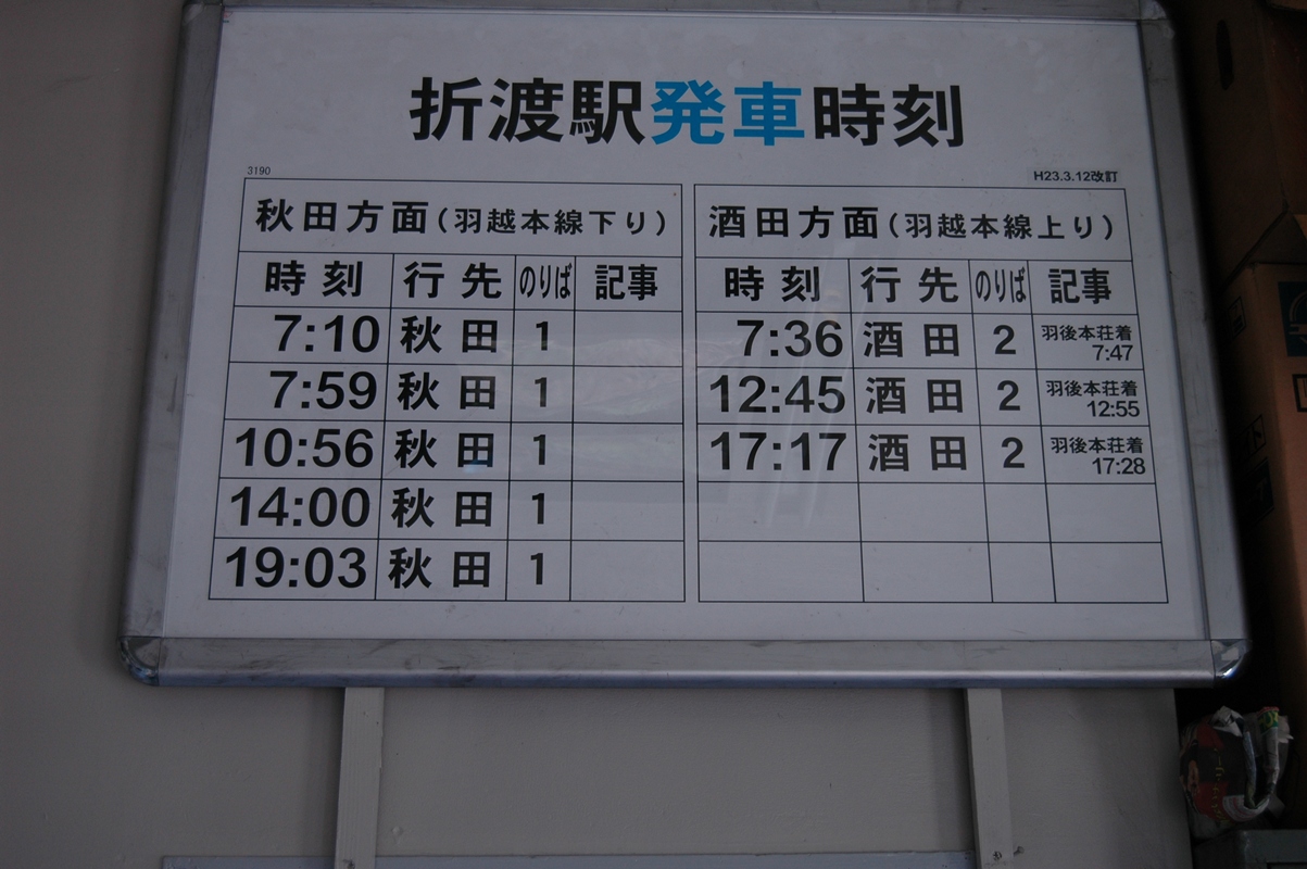 電車は(というか、列車は)よく寝れる。ここで時刻表をどうこねくり回しても、結果は同じ、なにしろ女鹿駅にいく列車は酒田発、12:39しかないのだ。