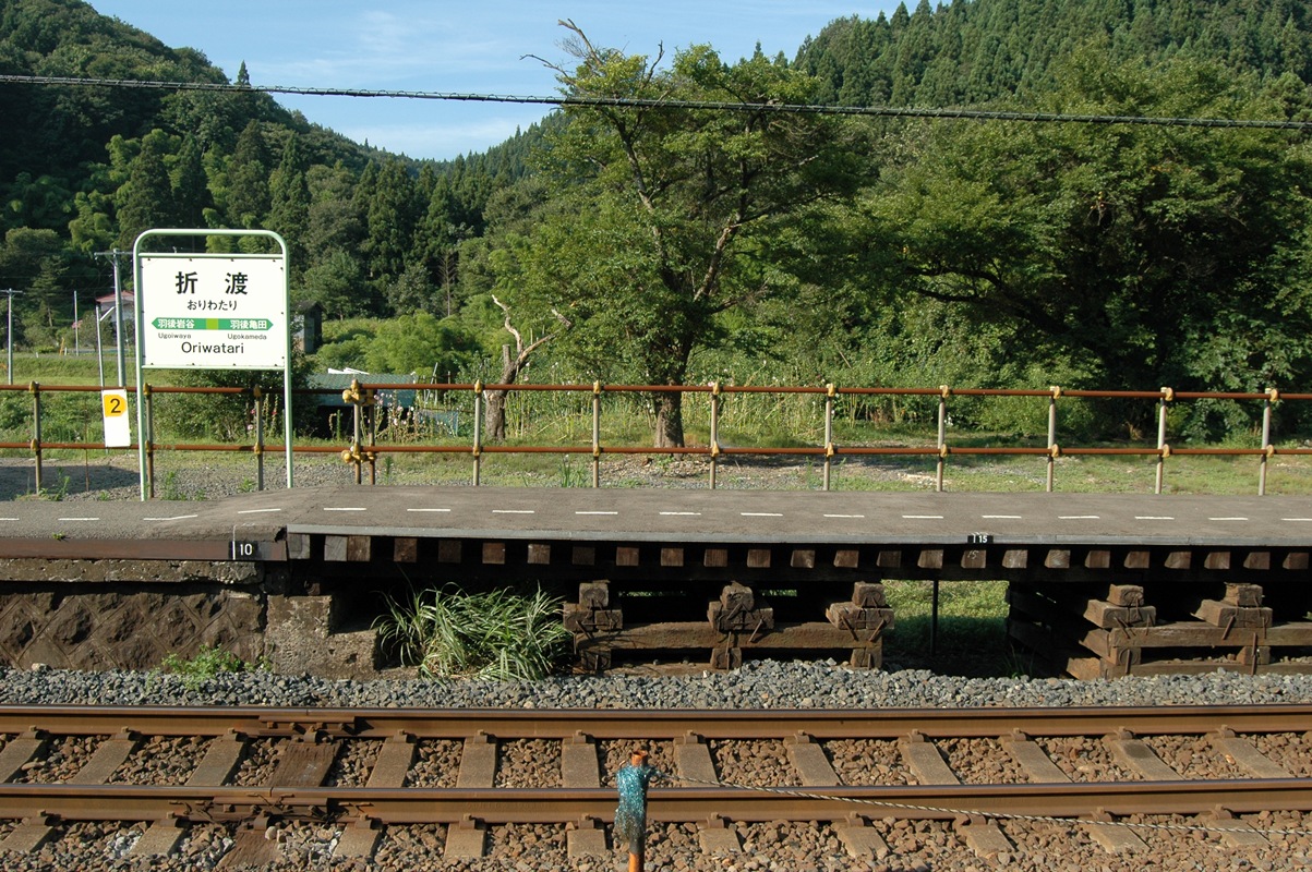 女鹿駅は近くて遠い駅である。もしくはカフカの「城」のような駅である、とはさすがに言いすぎだが、この日酒田のネットカフェを早朝に出て、酒田駅から折渡駅に向かったのは女鹿に止まる列車が無いからだ。そもそもこの羽越線の秋田-酒田間には3つ、秘境駅とされている駅がある。前回の桂根、そしてこの折渡、さらに女鹿駅だが、どれも止まる列車の本数が極端に少ないため、1日でこれらを巡ることは不可能ではないが、実行すると楽しめないことは疑いない。折渡に止まるが桂根には止まらないとか、気がむいた方には時刻表を眺めていただきたいところだが、正直、