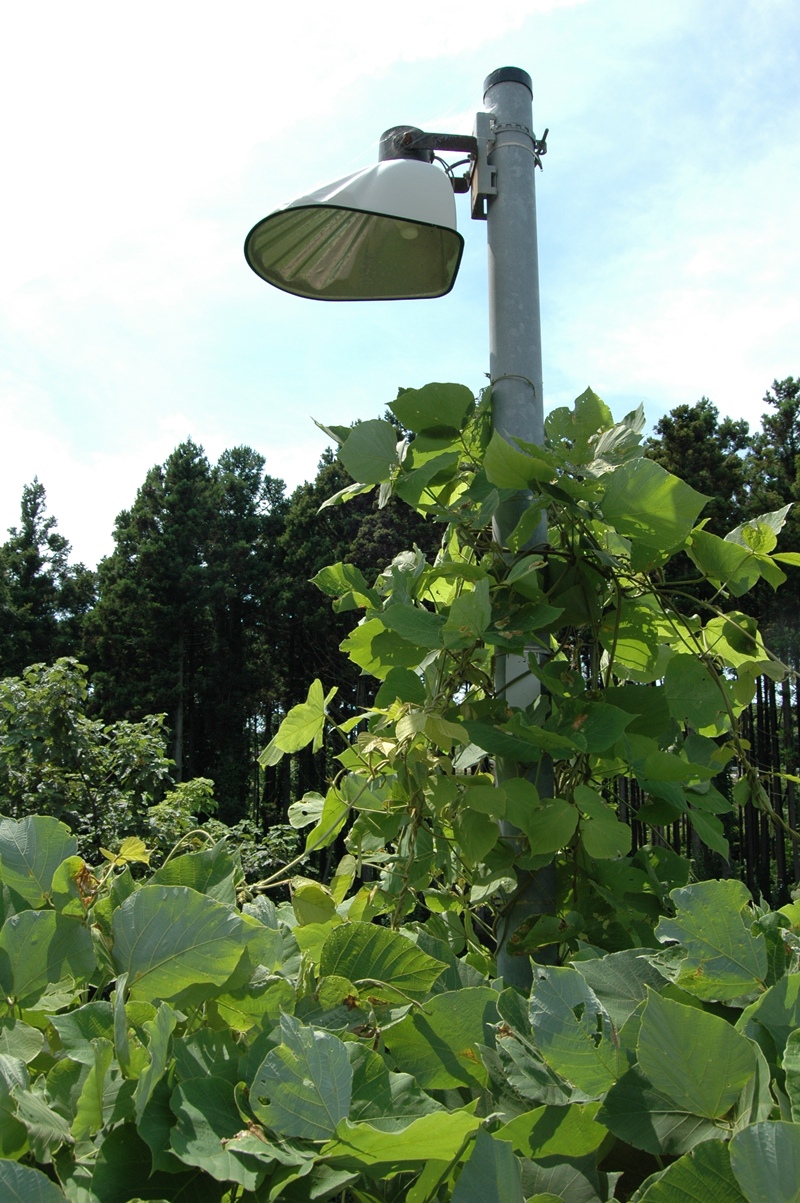 ホーム横の水銀灯。蔦に絡まれ姿が消えそうである。