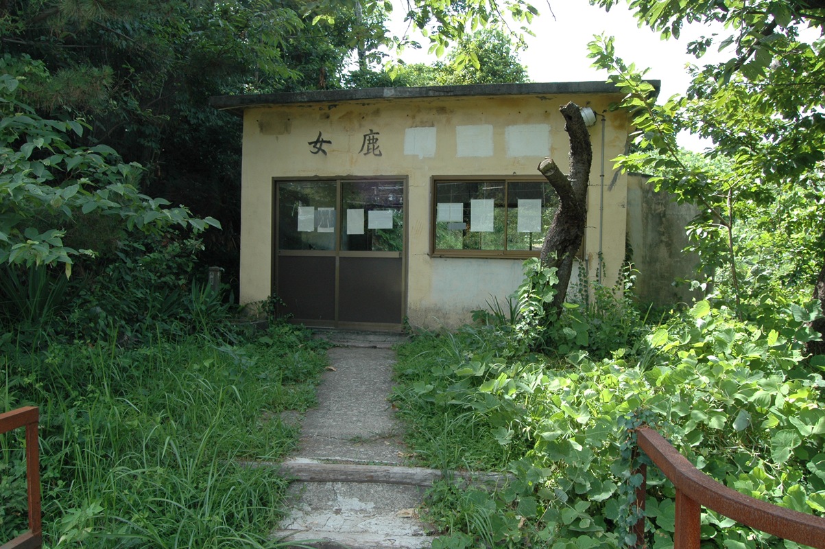 待合室。 女鹿信号場 と書かれていたようだが後ろ三文字は消されている。