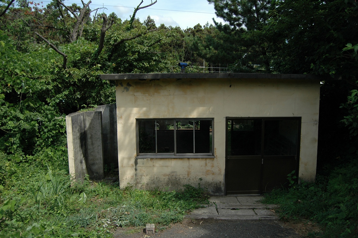 待合室入り口側から。左側、ブロックの塀のようなやつ、トイレだったものだ。