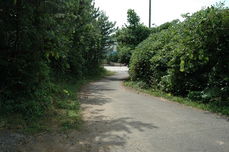 駅に至る道。左のような道が延々と続くのかと思うと、ほんの100メートルもいくと国道7号線に出る。