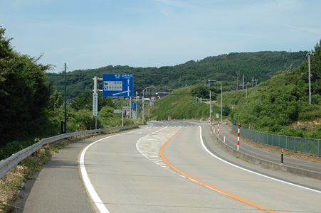国道7号線。ぜんぜん秘境じゃないね。この写真はサイズが小さいので見えないなかもしれないが、国道の看板からそばに鳥海温泉郷があるのがわかる。写真は秋田方向である。