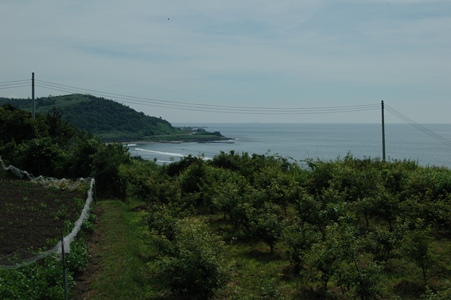 国道からは海が見える。駅入り口の交差点(?)から少し酒田方面に歩くと陸橋がある。「女鹿高架橋」となっている。