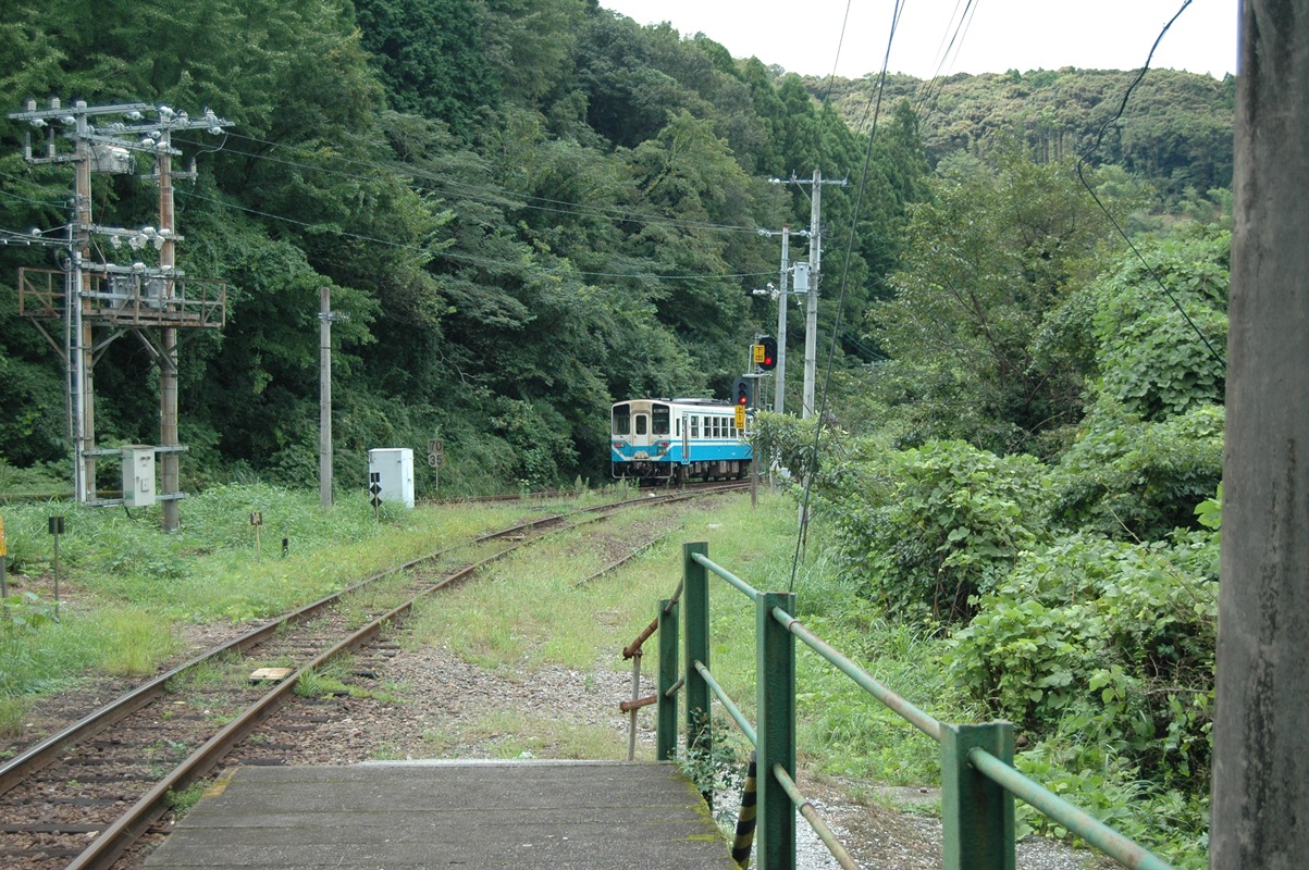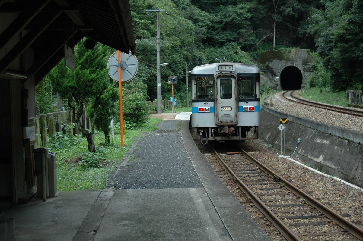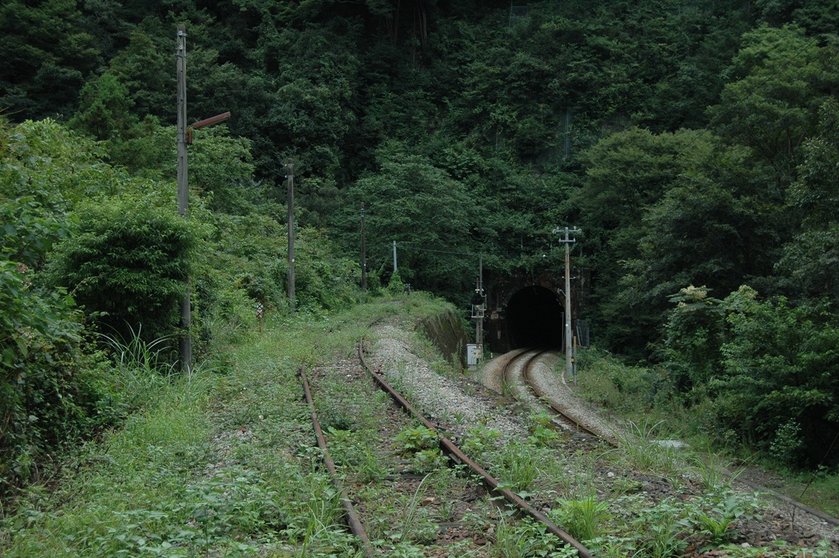 坪尻にて踏み切りを渡り、スイッチバック引込み線沿いに行いけば左側の谷には川が流れていると書いた。踏み切りをまっすぐいくと廃屋があり、そのそばに滝が見えるとも書いた。だが、そのまま行っても川には遭遇しないのである。はて?面妖な。 後に 国土地理院の地図(リンク)を見て仰天。実はこの鮎苦谷川、坪尻駅の平行部分は地下のトンネルというか、導水管を通っているのであった。しかもトンネルは2箇所あって、池田側トンネル(鉄道のトンネルね)の手前でまた導水トンネルに入り、線路の下をくぐっているのである。私が見た川はほんの百数十メートル見えている部分の一部だったわけだ。廃屋のそばで撮った滝の写真、あれはじつは上流側の導水トンネルの出口あたりなのだ。撮っている私の足の下を川は流れていたのである。たぶん。 調べてみると、坪尻は駅になるまえは列車交換のための信号場として作られたのだが、その際に作る場所がなく、川の流れを変えて、さらに川を埋め立ててつくったのだということであった。いやー、ご苦労な話です。 でだ、改めて「秘境駅へ行こう」の坪尻の項を見てみてば・・・・ちゃんとこのへんのことも記載されているではないか。お恥ずかしい。ぜんぜん記憶にありませんでした。 しかし、こうなるとその出口を是非見たいと思うのだが、見た人いませんかね。 |