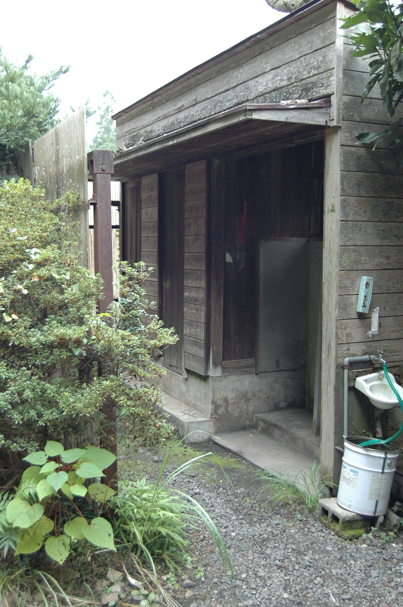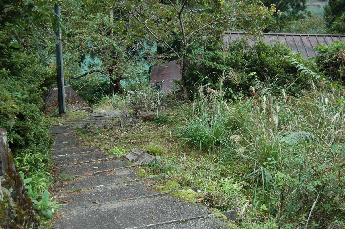 四阿の手前で右に曲がれば、いきなり階段であった。そして階段の先には有名な廃屋が二棟。かつての茶工場だそうである。大きい方は住居も兼ねていたそうで、居住されていたらしい。
