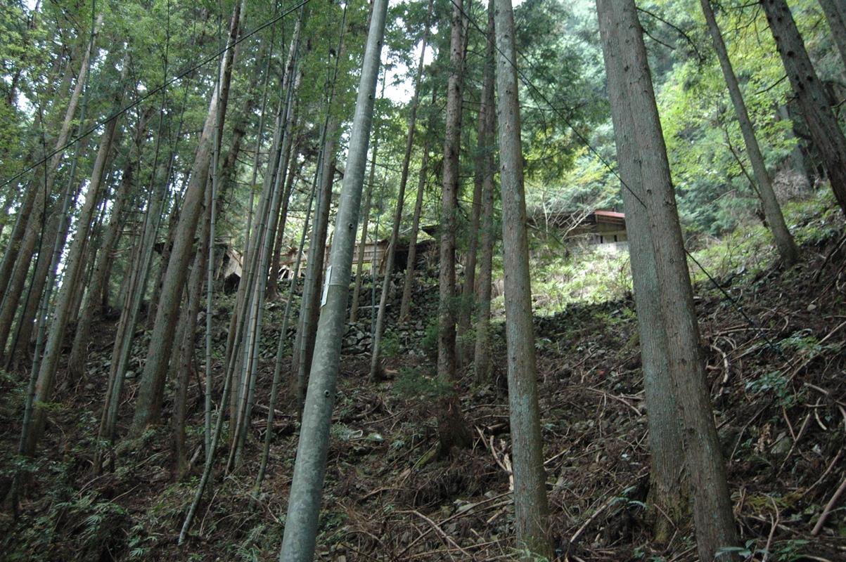 さらに進むと右側にあった廃屋。立派である。住宅というよ、りまるで山城のよう。しかしながら、いつから放置されたのか、今となってはどこから行けばいいのかすらわからん状態であった。