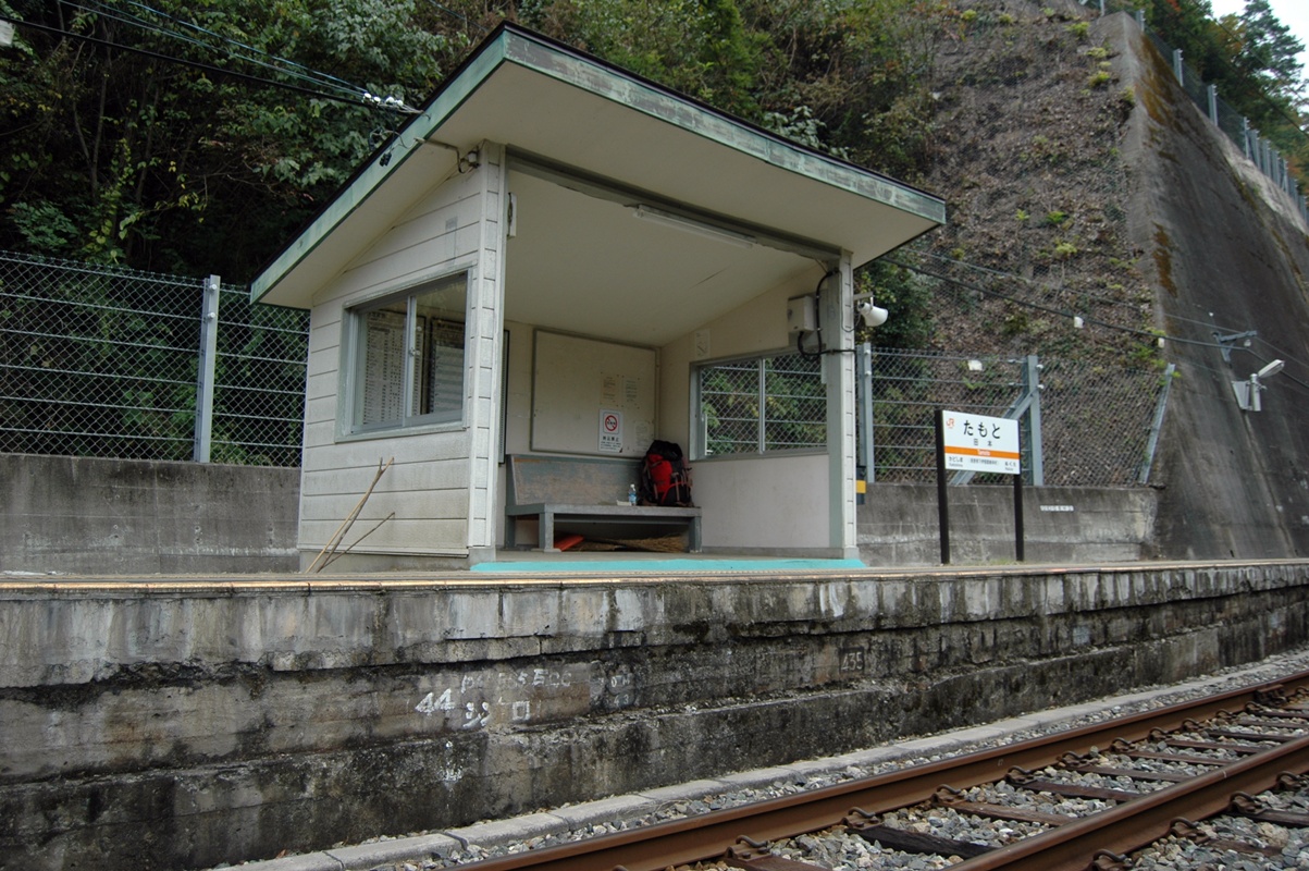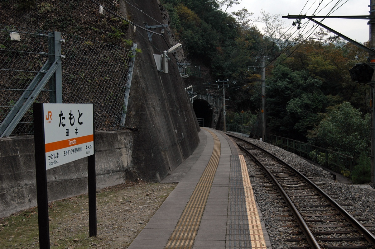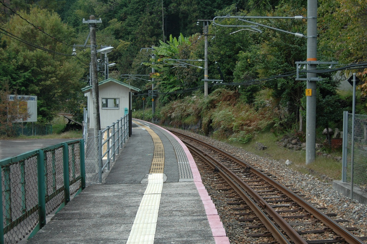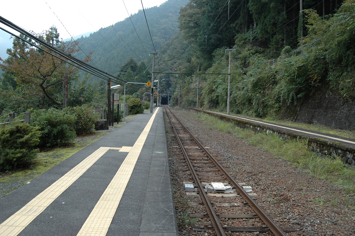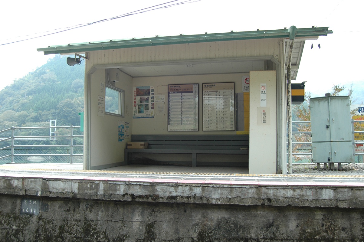 巾1メートル程度のメインストリート。メインストリートであるからして、アスファルト舗装であるのは当然である。下るメインストリートの先には四阿(あずまや)風の物件があった。小和田駅が一瞬脚光を浴びた時、ーー皇太子ご成婚、妃の旧姓が小和田(おわだ)であったというだけのことなのだがーー観光客が少なからず訪れたという。この駅で結婚式をしたというカップルまでいた。その式の写真は今も駅に飾られていたが、そんな観光客のためにつくられたものである。過ぎてしまえばかなりお間抜け、オーパーツみたいな代物であるが、(ちょっとちがうかw)これも一つの歴史というものか。四阿になにがあるかといえば二人懸けの木製の椅子である。背凭れが大きいのがそれ風。その背凭れには「小和田発ラブストーリー」「お二人の幸せを呼ぶ椅子」と書かれていた。
