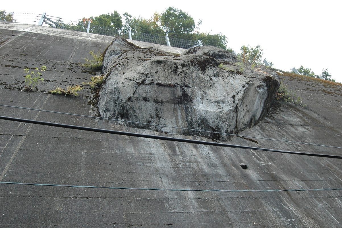 橋の残骸が残っているというか、引っかかっているというか。