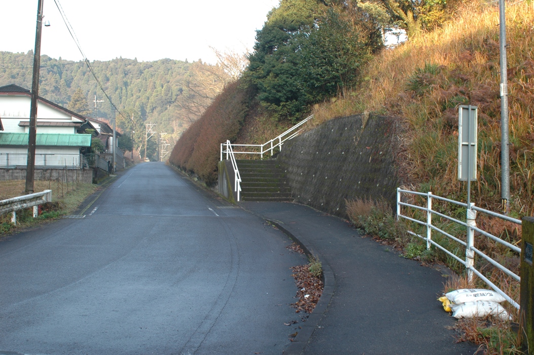 その道路です。右に見える階段を上ると駅があります。人家が2,3軒ありました。