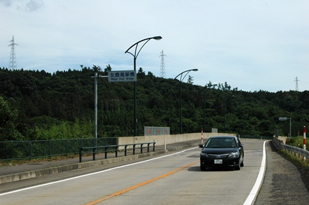 国道からは海が見える。駅入り口の交差点(?)から少し酒田方面に歩くと陸橋がある。「女鹿高架橋」となっている。